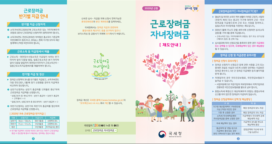 - 맞벌이 가구 : 3,600만 원 미만 (자녀 장려금은 4,000만 원 미만)