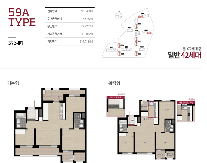 대곡역 롯데캐슬 엘클라씨는 59A, 84 Type으로 나누어져 있습니다.