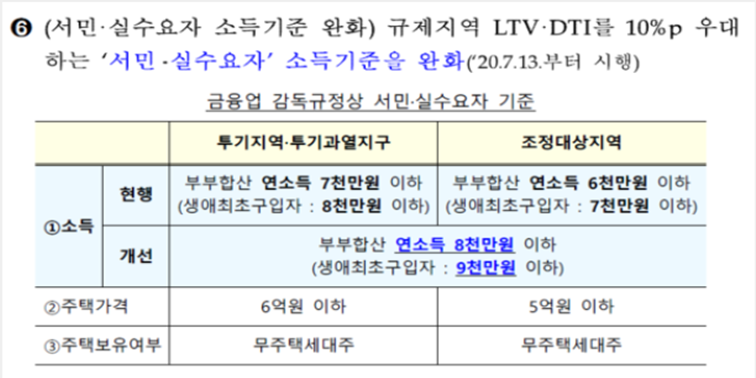 - 투기지역 및 투기과열지구에 대해서 부부합산 연소득 7천만 원 이하에서 → 부부합산 연소득 8천만 원 이하로 변경되었습니다.