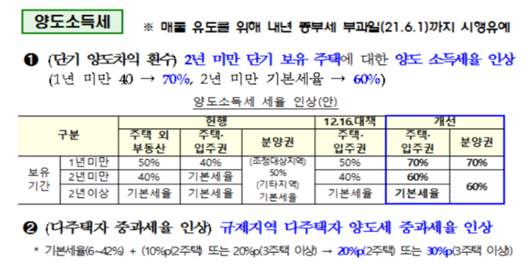 7.10 부동산 규제로 인한 양도소득세율 인상