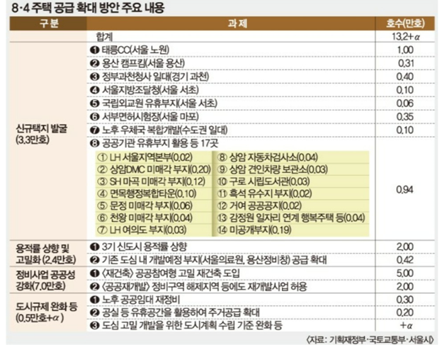 8.4 부동산 공급대책이란 최대 50층까지 허용하는 공공참여형 고밀도 재건축을 통해서 수도권에 새집을 약 13.2만 호 이상 공급한다는 것입니다.