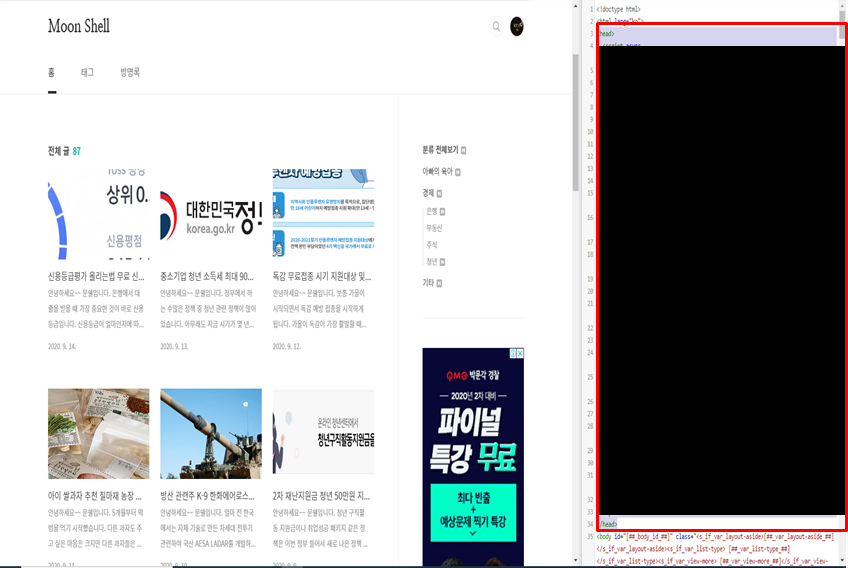 4. 조금 전에 애드센스에서 준 코드를 본인 블로그에 붙여 넣기를 하면 됩니다.