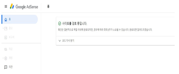 6. 그러면 이제 애드센스에서는 위와 같이 사이트를 검토 중이라는 알림만 남게 됩니다.