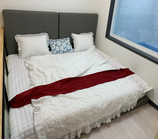 침대도 아마 슈퍼싱글 두 개를 합쳐 놓은 거 같습니다.